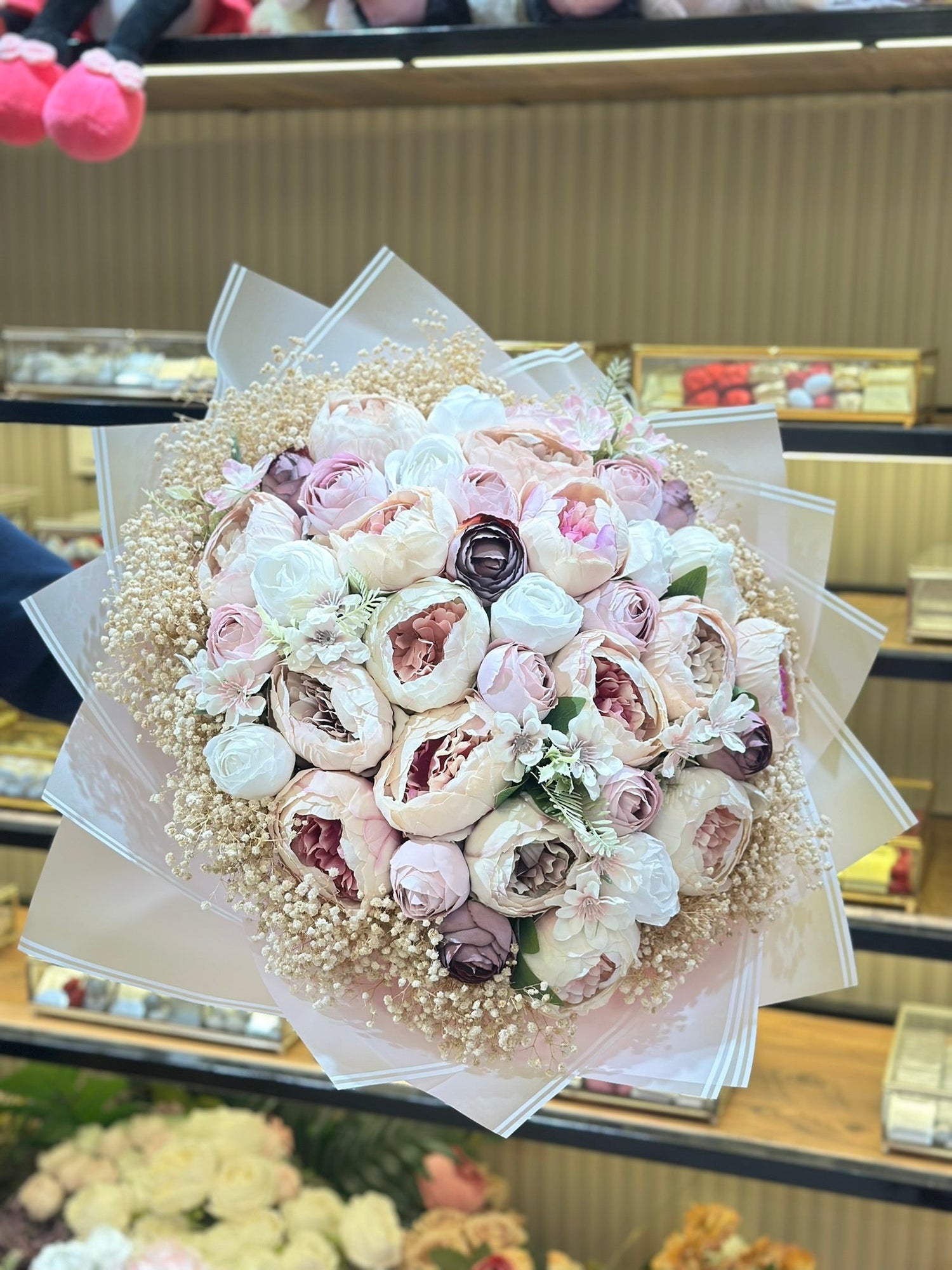 Soft Pastel Kalıcı Gül Buketi – Lüks & Romantik Aranjman