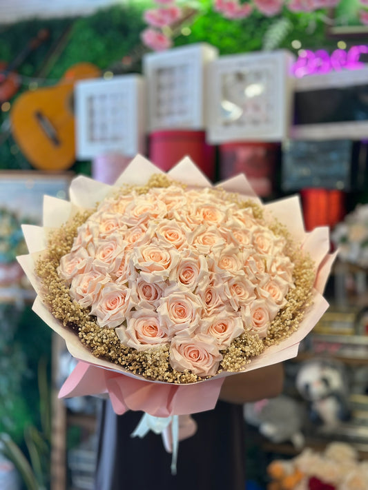 Pembe & Krem Renkli Kalıcı Gül Buketi – Lüks ve Zarif Tasarım