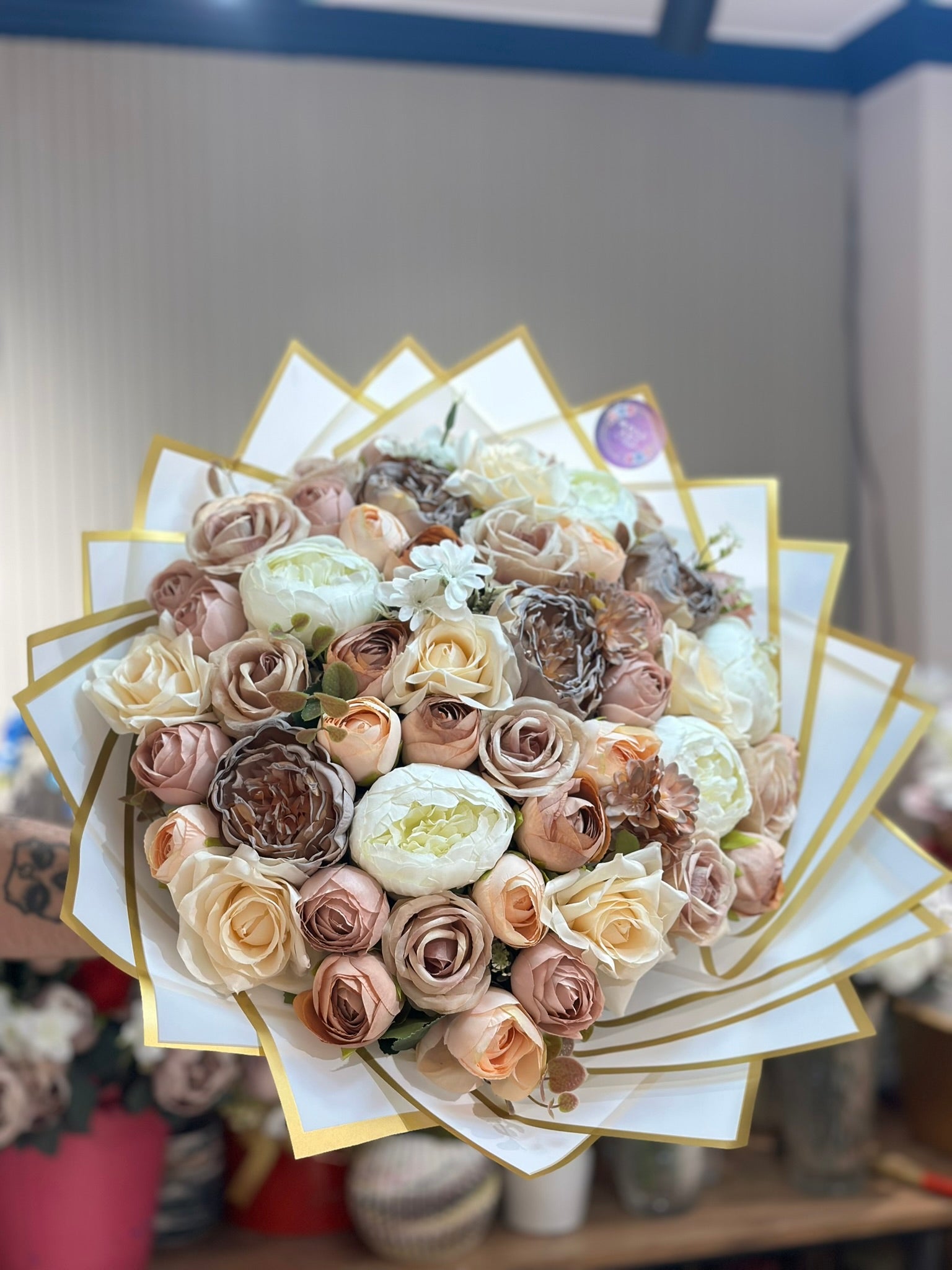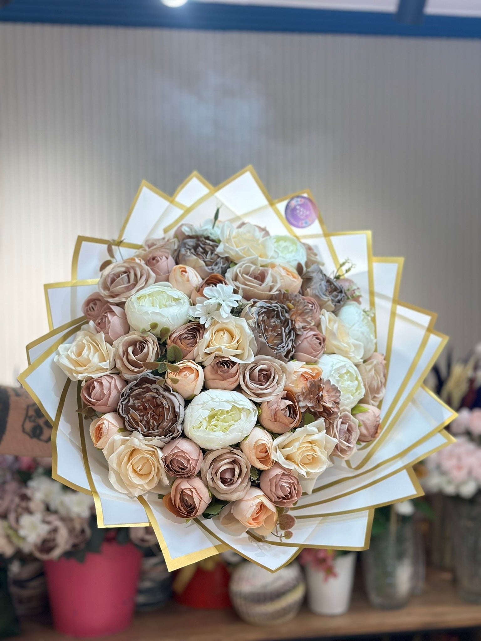 Krem ve Kahve Boheme Gül Buketi – Lüks ve Zamansız Tasarım